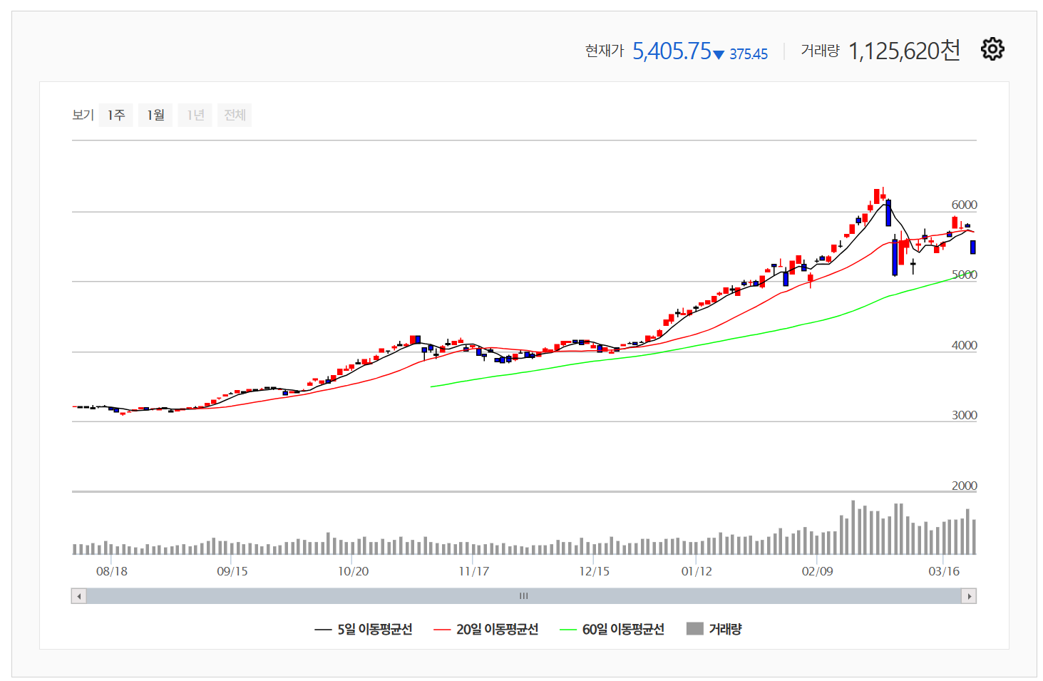 코스피: 5,405.75 (-6.49%)